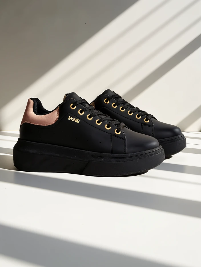 Die Callista Sneakers von Royalfashion sind ein außergewöhnliches Angebot für Frauen, die Wert auf Komfort und subtilen Stil legen. Sie sind aus hochwertigem, ökologischem Leder gefertigt und zeichnen sich durch eine ästhetische Verarbeitung und Langlebigkeit aus. Dank eines Produktionsprozesses, der auf strenger Qualitätskontrolle und umweltfreundlichen Technologien basiert, sehen diese Schuhe nicht nur gut aus, sondern halten auch viele Saisons lang. Das luftige Textileinsatz und das Obermaterial sorgen für ein Gefühl von Frische und Komfort den ganzen Tag.Das Besondere am Modell Callista ist die solide, flache Sohle mit einer Höhe von 4,5 cm, die Stabilität und hohen Tragekomfort auch bei längeren Spaziergängen oder einem aktiven Tag garantiert. Die runde Schuhspitze und die klassische Schnürung sorgen dafür, dass die Sneakers gut am Fuß sitzen und sich seiner Form anpassen. Das fehlende Muster und die einheitliche, schwarze Farbgebung mit kontrastierender Fersenkappe bilden die ideale Basis für viele Styles.Die Schuhe passen hervorragend zu den aktuellen Trends – minimalistisches Design, hohe Sohle und Vielseitigkeit machen sie zu einem Must-Have für Frühling, Sommer und Herbst. Stilistisch können Sie sie auf verschiedene Arten kombinieren:1. Casual Look – kombinieren Sie die Sneakers mit hellen Röhrenjeans und einem einfachen T-Shirt für ein bequemes Alltagsoutfit.2. Streetwear – kombinieren Sie sie mit einem kurzen Kleid oder einem Midirock und einem Oversize-Blazer, um urbanen Chic zu betonen.3. Sportliche Eleganz – tragen Sie sie zu Leggings und einem Kapuzenpullover, ideal für Wochenendspaziergänge oder zum Einkaufen.Die Pflege der Callista Sneakers ist sehr einfach – wischen Sie sie einfach mit einem feuchten Tuch und etwas mildem Reinigungsmittel ab und trocknen Sie sie fern von Wärmequellen. Es wird auch empfohlen, Pflegemittel für ökologisches Leder zu verwenden, um die Frische und Elastizität des Materials zu erhalten.Dieses Modell passt zu den aktuellen Trends der urbanen Mode, wo bequeme, ausdrucksstarke Schuhe auf Plateausohlen dominieren, die den individuellen Stil wirkungsvoll unterstreichen und jedem Outfit Selbstbewusstsein verleihen. Die Callista Sneakers von Royalfashion sind die perfekte Wahl für aktive Frauen, die moderne Klassiker schätzen.
