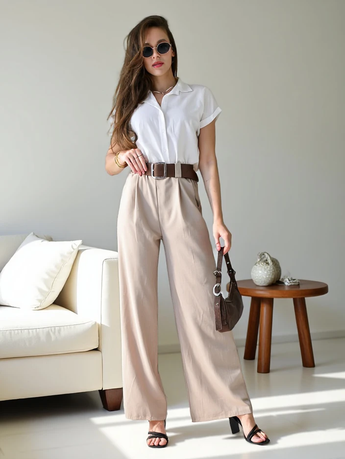Royalfashion Weite Damenhose mit Gürtel