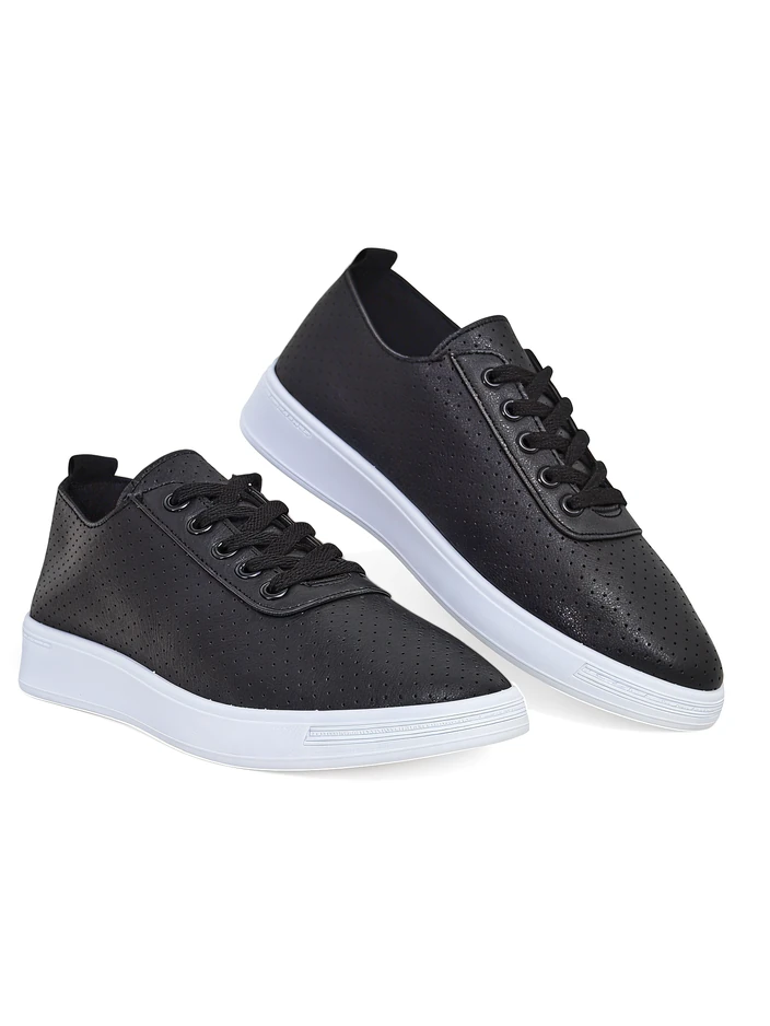 - Perforierte Damensportschuhe aus Eco-Leder und Stoffeinlage. Modell auf flacher Sohle. Sie passen perfekt zu alltäglichen Outfits!.