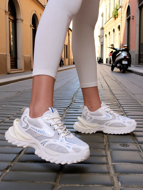 • Damen Sportschuhe aus patentiertem Eco-Leder und Mesh. Modell auf einer dickeren Sohle. Schnüroberseite. Sie passen perfekt zu alltäglichen Outfits!