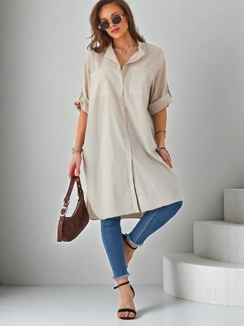 - Klassisches langes Damen Oversize Hemd aus angenehmem Stoff. Es verfügt über einen V-Ausschnitt und lange Ärmel. Der einfache Schnitt sorgt für eine perfekte Passform für jede Figur! HINWEIS: Messgenauigkeit (+/-) 1 cm.
