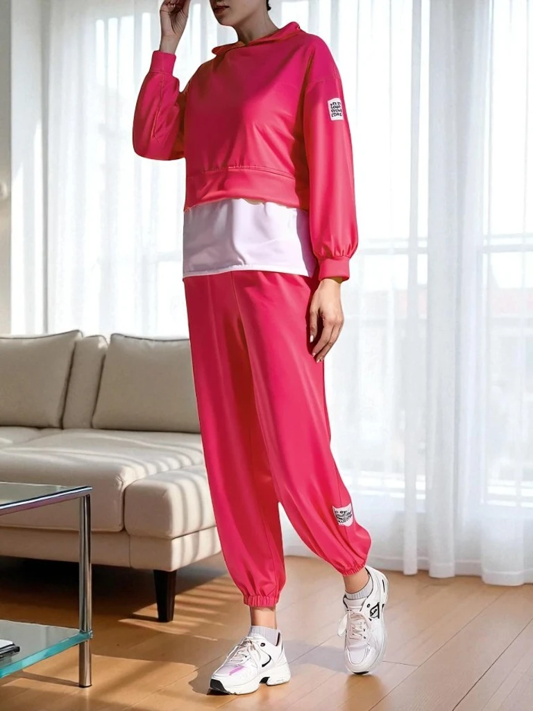- Damen Freizeitset aus angenehmem Material. Der Pullover hat lange Ärmel und einen hemdähnlichen Einsatz. Die Hose hat 2 Eingriffstaschen, einen elastischen Bund und Bündchen. Perfekt für diejenigen, die Komfort schätzen.