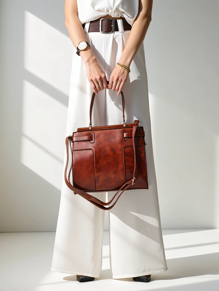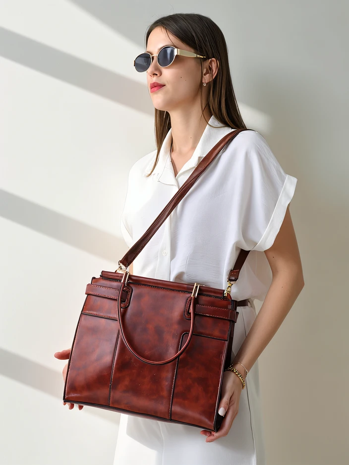 - Große Damenhandtasche aus Eco-Leder mit Reißverschluss. Das Modell verfügt über: - 1 Fach mit Trennwand - 1 Reißverschlusstasche außen - 4 Innentaschen;