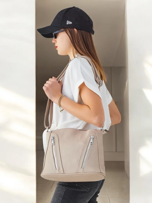- Kleine Handtasche für Damen mit Reißverschluss aus Ökoleder. Das Modell verfügt über 1 Fach, 3 Innenfächer und 3 Außenfächer. Darüber hinaus ist es mit einem abnehmbaren, verstellbaren Tragegurt ausgestattet. Perfekt für den täglichen Gebrauch!