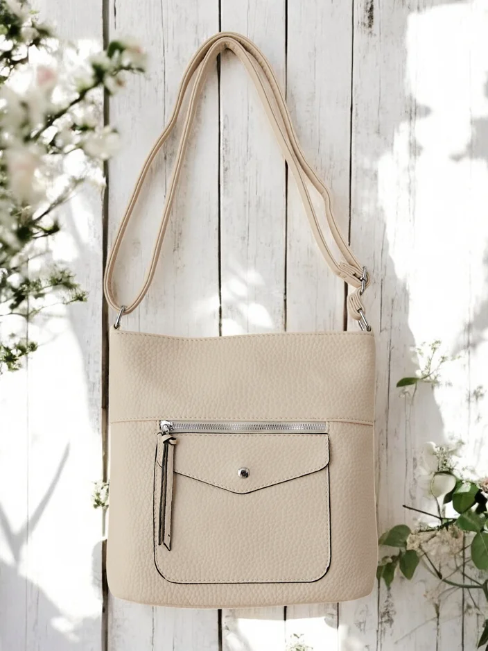 - Damenhandtasche mit Reißverschluss, aus Ökoleder. Das Modell verfügt über 1 Hauptfach, 3 Innenfächer und 1 Außenfach. Außerdem hat es einen verstellbaren Tragegurt. Perfekt für den täglichen Gebrauch!