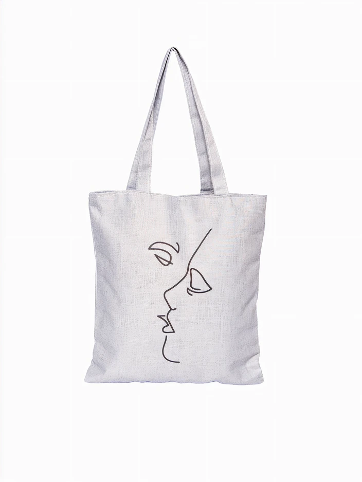 - Eine klassische Umhängetasche aus weichem Stoff mit einem dekorativen weißen Druck auf der Vorderseite. Mit einem Reißverschluss verschlossen. Innen gibt es ein großes Fach und eine kleine Reißverschlusstasche. Perfekt zum Einkaufen!
