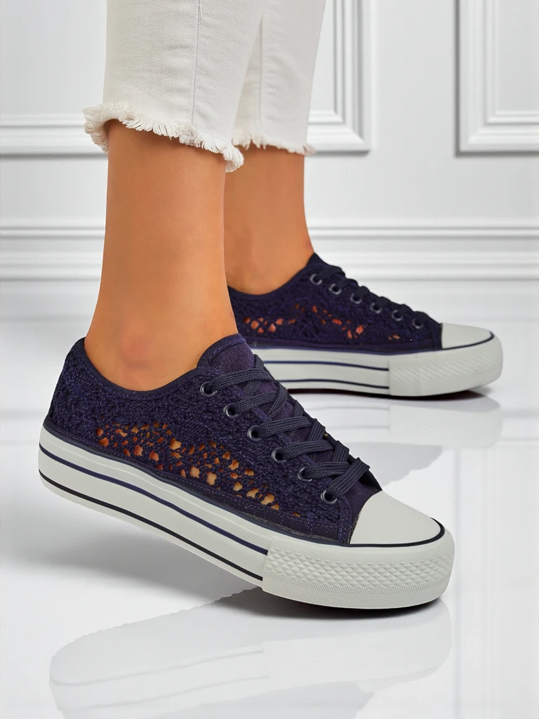 Aureliana sind äußerst stilvolle Damen-Sneaker aus hochwertigem Stoff, die speziell für Frauen entworfen wurden, die Komfort und ein einzigartiges, modisches Aussehen lieben. Das Obermaterial dieser Schuhe ist aus atmungsaktivem Ajourstoff gefertigt, der auch an warmen Sommertagen für eine hervorragende Luftzirkulation und Komfort sorgt. Dieses Material ist ein hochwertiges Textil, das sich sowohl durch Strapazierfähigkeit als auch durch Hautfreundlichkeit auszeichnet. Auch die Innensohle ist aus weichem Textil gefertigt, was für zusätzlichen Komfort und Dämpfung sorgt. Der flache Absatz und die dickere, flexible Sohle mit einer Höhe von 2,5 cm garantieren Stabilität und Halt bei täglichen Spaziergängen oder Treffen. Diese Sneaker sind das ideale Angebot für Frauen, die urbanen Stil und Komfort im Alltag schätzen. Die Vorteile dieser Sneaker sind vor allem die Leichtigkeit und Atmungsaktivität der Konstruktion. Die marineblaue Farbe sorgt dafür, dass die Schuhe perfekt zu vielen Styles passen. Das zarte Ajourmuster verleiht ihnen einen subtilen Charme und lässt das Ganze leicht und feminin wirken. Styling-Vorschläge: 1. Lässiges Styling mit hellen Boyfriend-Jeans, einem weißen T-Shirt und einer leichten Jeansjacke für kühlere Tage. 2. Ein Midirock mit Blumenmuster und eine leichte Bluse – die ideale Wahl für einen Frühlingsspaziergang oder ein Treffen mit einer Freundin. 3. Shorts und ein übergroßes, in der Taille gebundenes Hemd, ein tolles Angebot für sommerliche Ausflüge in die Stadt oder an den Strand. Reinigung und Pflege: Die Sneaker sollten mit einer weichen Bürste und lauwarmem Wasser mit einem milden Reinigungsmittel gereinigt werden. Sie sollten nicht in der Waschmaschine gewaschen oder direkt in der Sonne getrocknet werden, um die ursprüngliche Struktur des Stoffes zu erhalten. An einem trockenen und luftigen Ort aufbewahren. Aktuelle Trends: Ajour-Sneaker in intensiven, tiefen Farben wie Marineblau sind derzeit einer der heißesten Trends der Frühjahr-Sommer-Saison. Frauen greifen immer häufiger zu Schuhen, die nicht nur bequem sind, sondern sich auch durch originelle, handgefertigte Details auszeichnen. Das Modell Aureliana vereint all diese Eigenschaften und ist somit die ideale Wahl für moderne Frauen, die Wert auf Stil und Komfort legen.