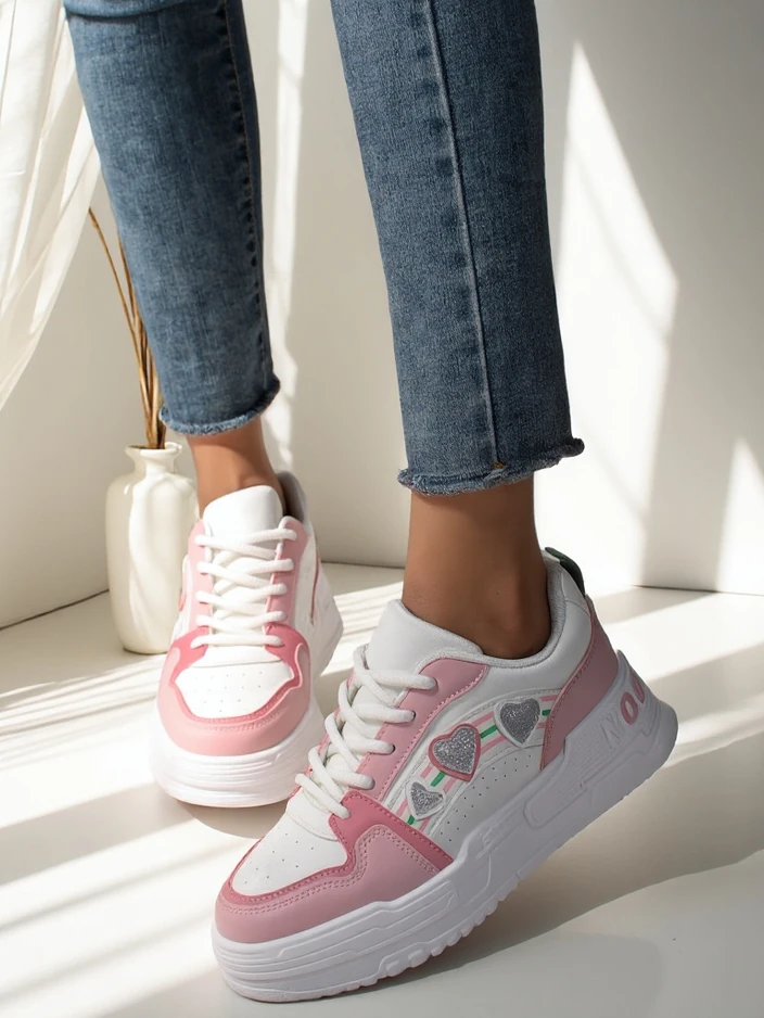 - Damen Sneaker mit flacher Sohle - die perfekte Kombination aus Stil und Komfort. Das Schuhwerk besteht aus Eco-Leder. Schnürmodell mit Stoffeinlage. Ideal für aktive Menschen!