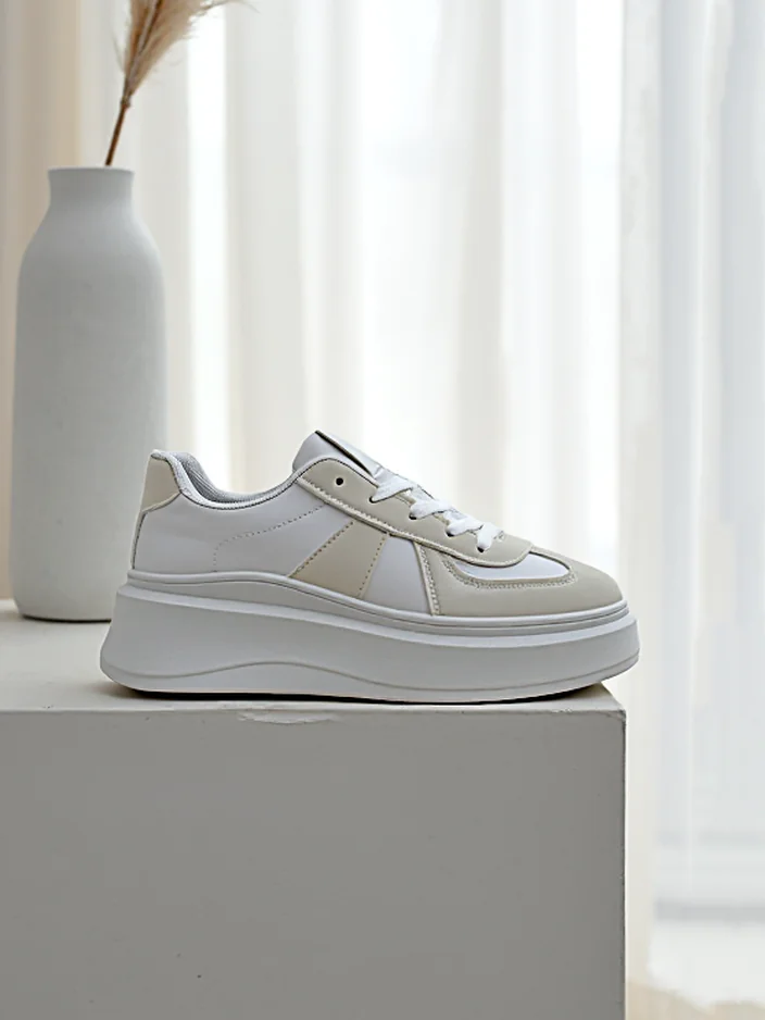 - Damensneaker mit Plattform - eine perfekte Kombination aus Stil und Komfort. Schuhe aus Eco-Leder. Schnürmodell, hat eine Stoffsohle. Ideal für aktive Menschen!