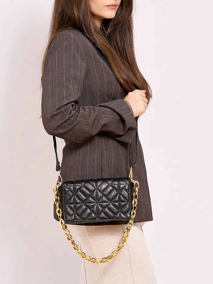 - Eine außergewöhnliche kleine gesteppte Damenhandtasche aus Eco-Leder. Das Modell verfügt über 1 Fach und eine Schulterkette. Perfekt für den täglichen Gebrauch!