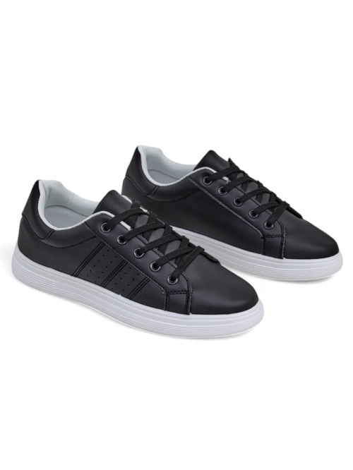 - Stylische Damen Sportschuhe zum Schnüren mit flacher Sohle. Das Obermaterial ist aus ökologischem Leder hergestellt. Innensohle aus Stoff. Bequeme Schuhe für jeden Tag!