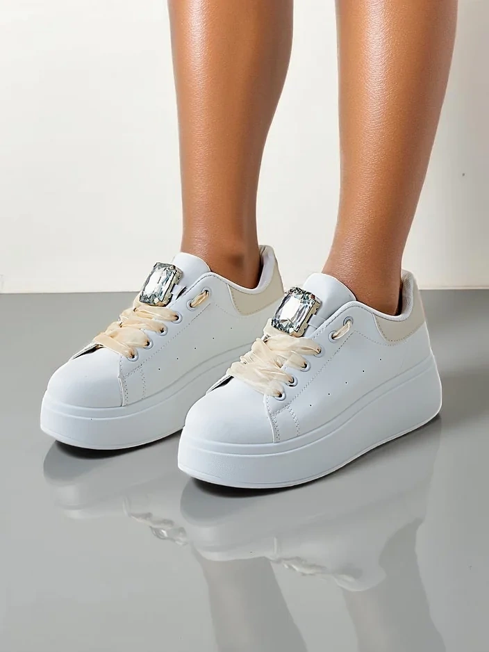 - Damensneaker mit Plattform - eine perfekte Kombination aus Stil und Komfort. Schuhe aus Eco-Leder. Schnürmodell, hat eine Stoffsohle. Ideal für aktive Menschen!
