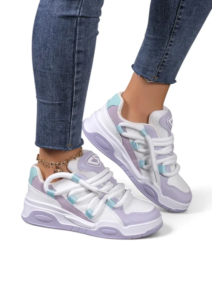 - Damen Plattform Sneakers - eine perfekte Kombination aus Stil und Komfort. Schuhe aus Eco-Leder. Schnürmodell mit einer Stoffeinlage. Ideal für aktive Personen!