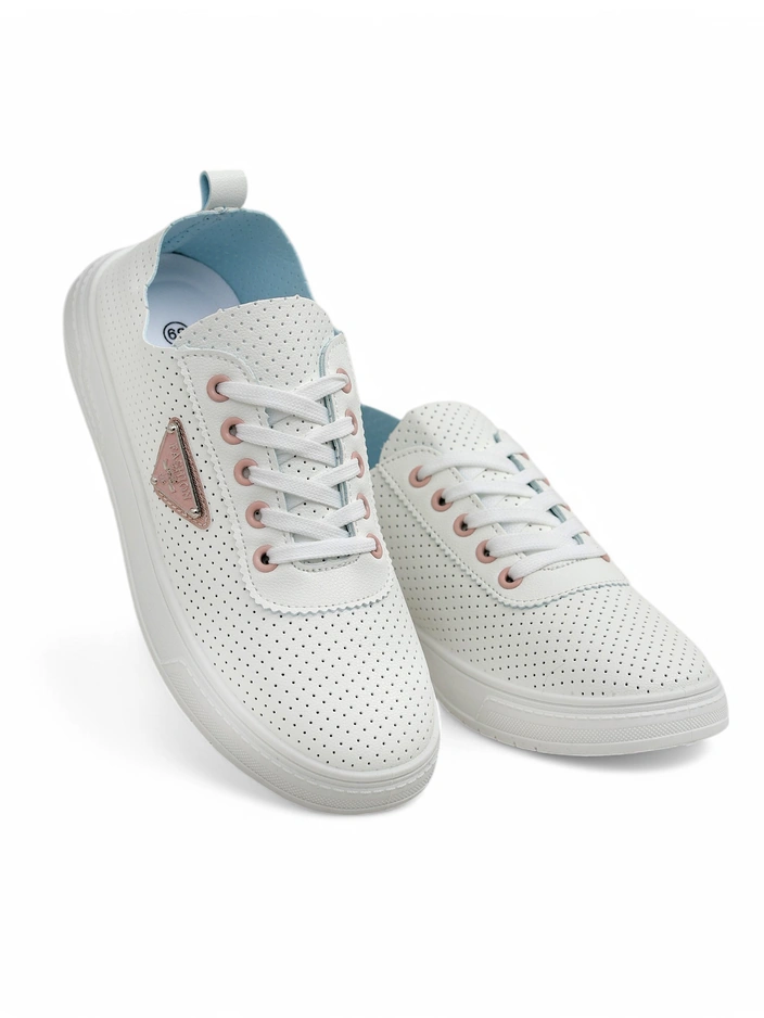 • Original Schnürschuhe für Damen mit einem Druck auf der flachen Sohle - eine perfekte Kombination aus Stil und Komfort. Das Schuhwerk besteht aus ökologischem Leder. Schnürmodell mit einer Stoffsohle. Ideal für aktive Menschen!