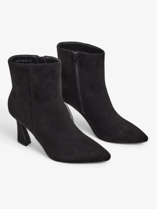 - Stylische Damen-Ankle Boots aus Eco-Suede - die perfekte Lösung für kühlere Tage. Das Modell verschließt mit einem Reißverschluss und hat eine Eco-Leder-Einlegesohle. Stiletto-Modell mit spitzem Zehen.
