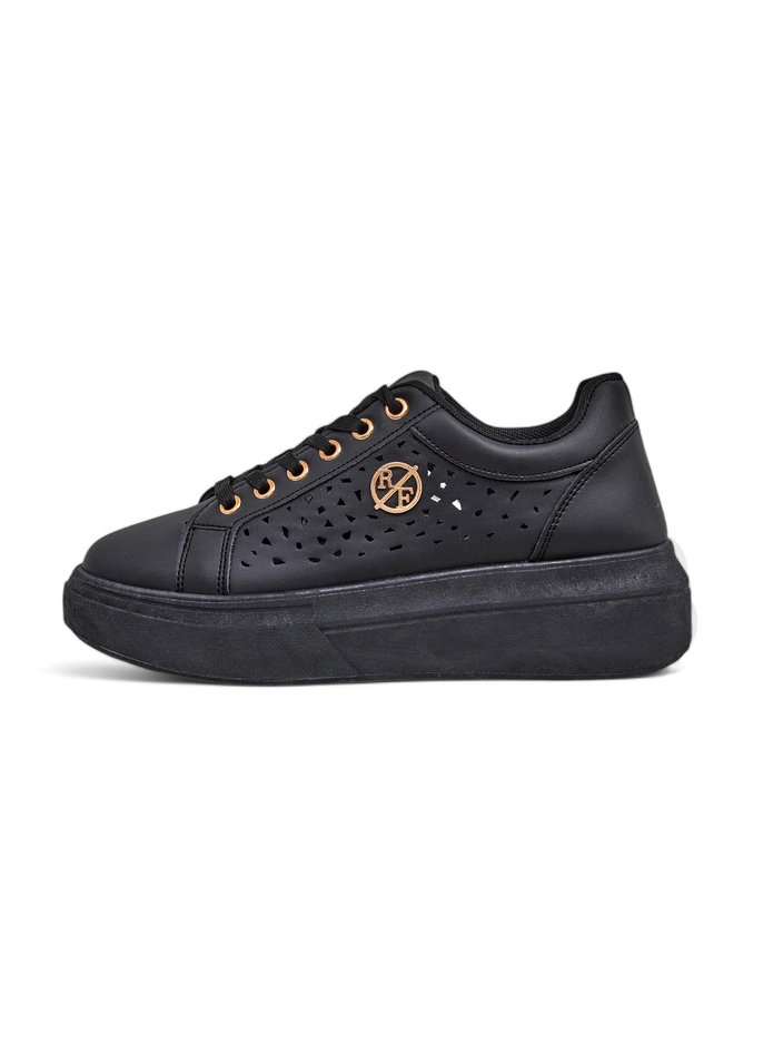 Damen-Sneakers Kalista Nero - schwarze Plateaus aus Öko-Leder, Frühlingskollektion