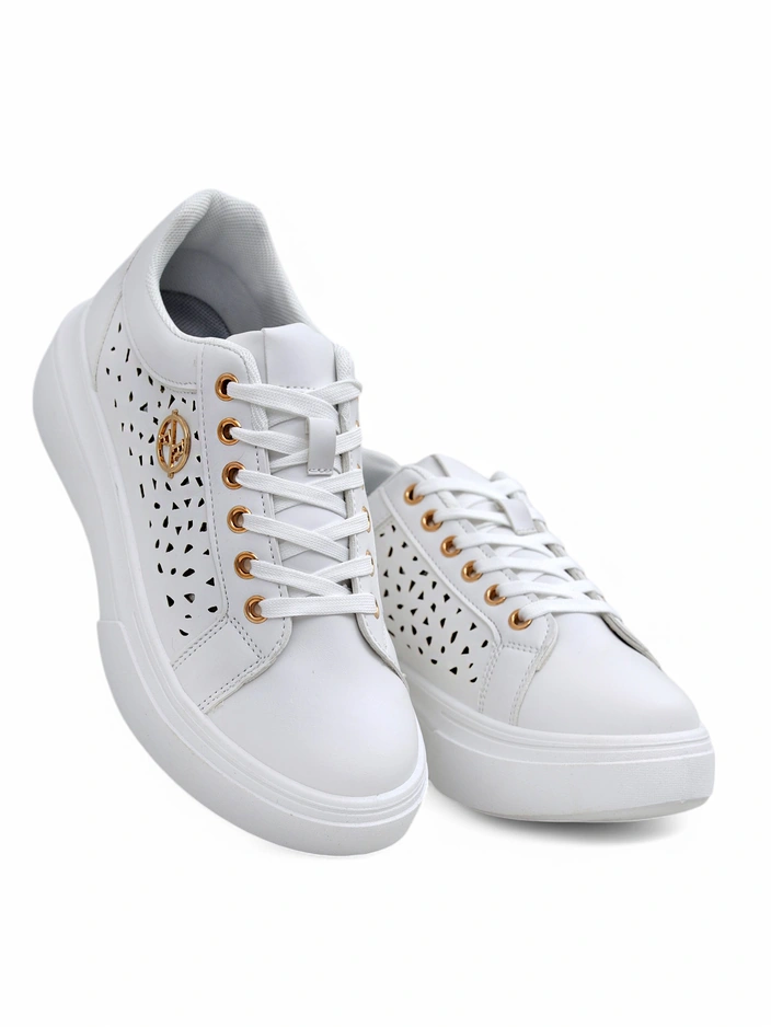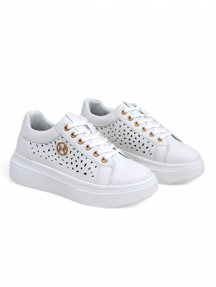 Damen-Sneakers Calista Bianco aus Öko-Leder, durchbrochen, Frühlingsmodell 4,5 cm