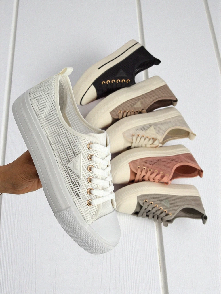 Damen Weiße Ariadne Mesh Sneaker – Atmungsaktive Turnschuhe mit flacher Sohle