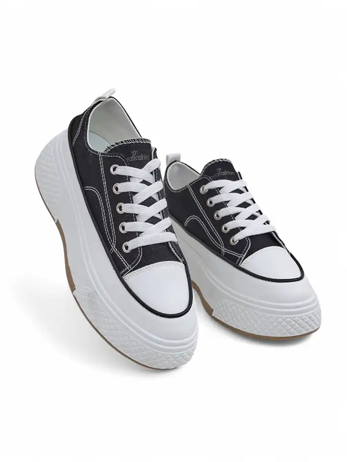 - Stilvolle Damen-Sneaker aus Stoff. Modell auf bequemem Plateau. Schnürung oben. Ideal für lässige Outfits!