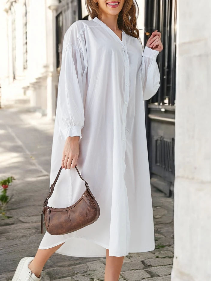 - Klassisches, langes Damenhemd a'la Kleid, aus angenehmem Stoff gefertigt. Es hat einen V-Ausschnitt und lange Ärmel. Der schlichte Schnitt sorgt für eine gute Passform für jede Silhouette! HINWEIS: Messgenauigkeit (+/-) 1 cm.