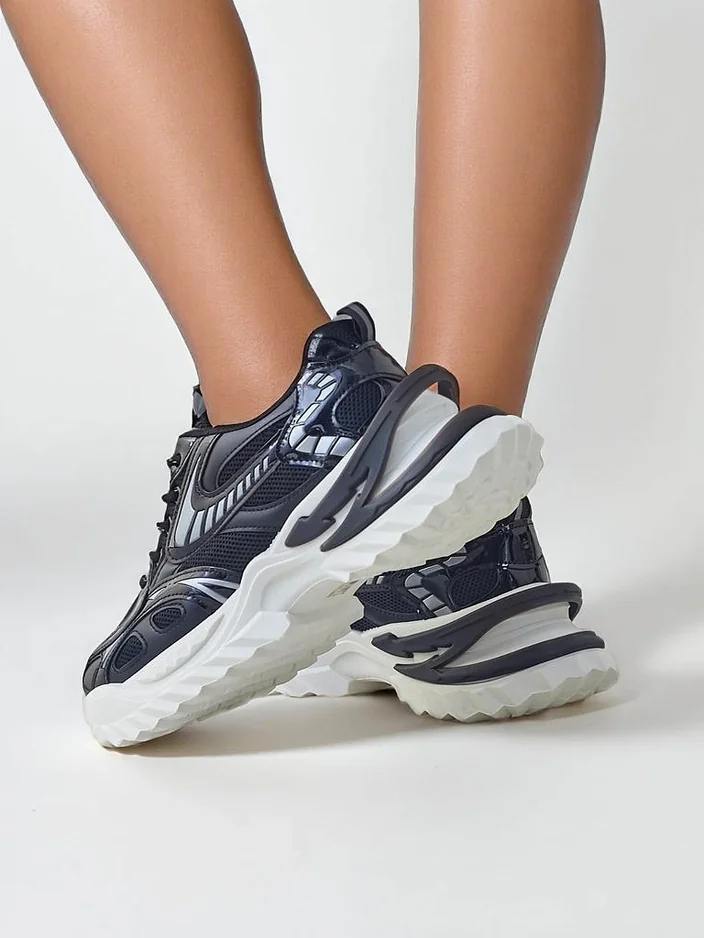Sneakersy charakteryzują się płaskim obcasem o wysokości 5,5 cm, dzięki czemu są idealne zarówno na codzienne spacery, jak i lekkie treningi. Połączenie materiałów zapewnia trwałość i łatwość w pielęgnacji. Produkty wykonane z ekologicznej skóry są przyjazne dla środowiska, a ich nowoczesny wygląd wpisuje się w aktualne trendy mody.