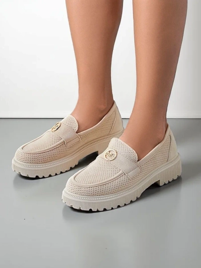 • Leichte Damenmokassins mit flacher Sohle. Das Modell ist im lässigen Stil und aus umweltfreundlichem Wildleder gefertigt, die Innensohle besteht aus umweltfreundlichem Leder. Perfekt für Frühlingsoutfits!.