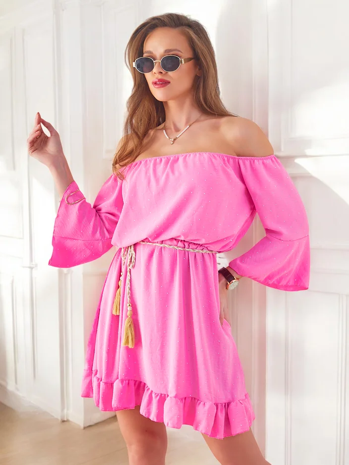 - Das Damen-Minikleid im spanischen Stil mit langen Ärmeln und Strasssteinen vereint Eleganz und Sinnlichkeit. Die schimmernden Details verleihen ihm einen einzigartigen Charakter, perfekt für Abendveranstaltungen.