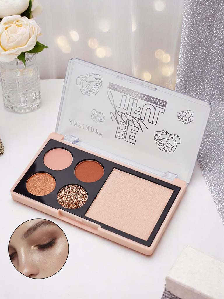 - Die Palette mit 4 schimmernden Lidschatten und Highlighter ist das perfekte Werkzeug für atemberaubende Make-up-Looks. Sie enthält intensiv pigmentierte Lidschatten und einen dezenten Highlighter, der Glanz verleiht und die Augen betont.