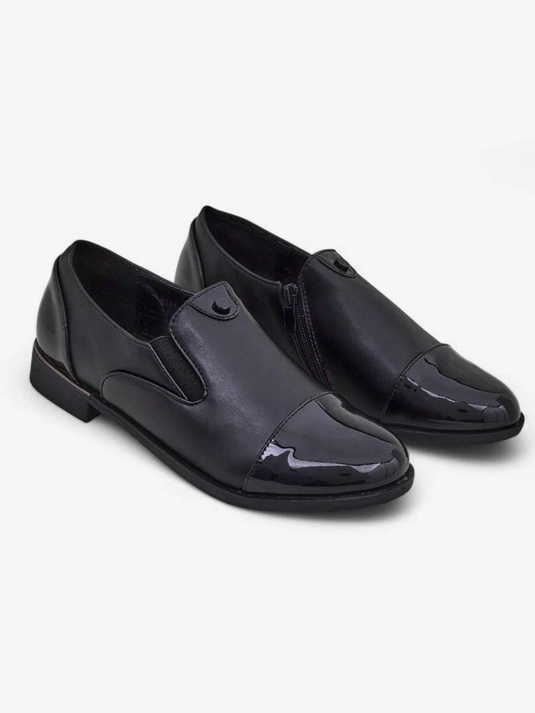 - Damskie półbuty na płaskiej podeszwie. Cholewka jest wykonana z eko skóry matowej i lakierowanej, wkładka to skóra ekologiczna. Idealna baza do codziennych outfitów!
