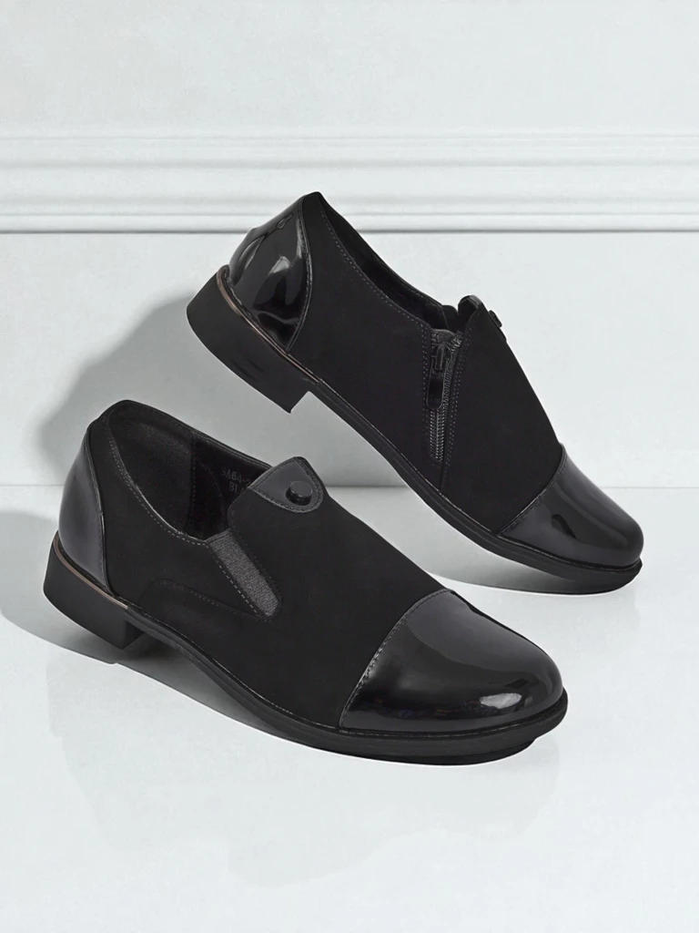 Schwarze Halbschuhe mit flachem Absatz aus Öko-Leder sind der neueste FRÜHLING/SOMMER-Trend – geschätzt für ihre Vielseitigkeit, ihren Komfort und ihre minimalistische Eleganz, passen sie perfekt zu sowohl klassischen als auch modernen Stilen.