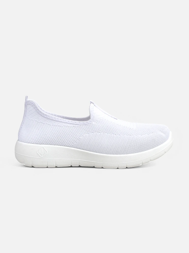 Damen weiße Callista Slip-Ons aus atmungsaktivem Stoff mit flachem Absatz