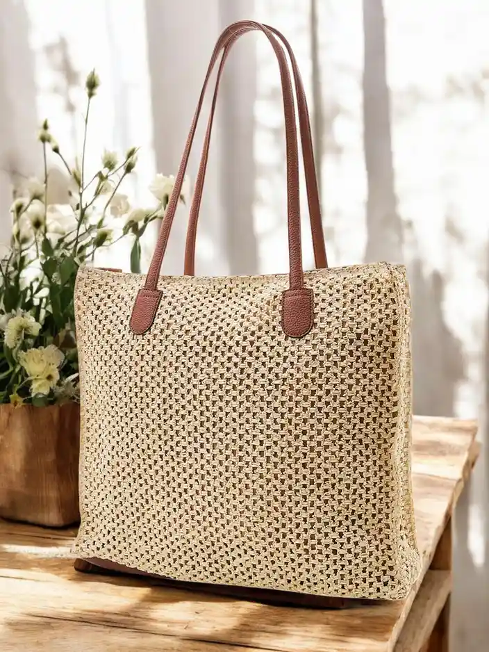 - Eine große Damenstrottasche für den Sommer ist die perfekte Wahl für warme Tage. Leicht und geräumig, ist sie ideal für den Strand, den Urlaub oder tägliche Spaziergänge und verleiht jedem Outfit einen Hauch von Sommerzauber. Sie hat