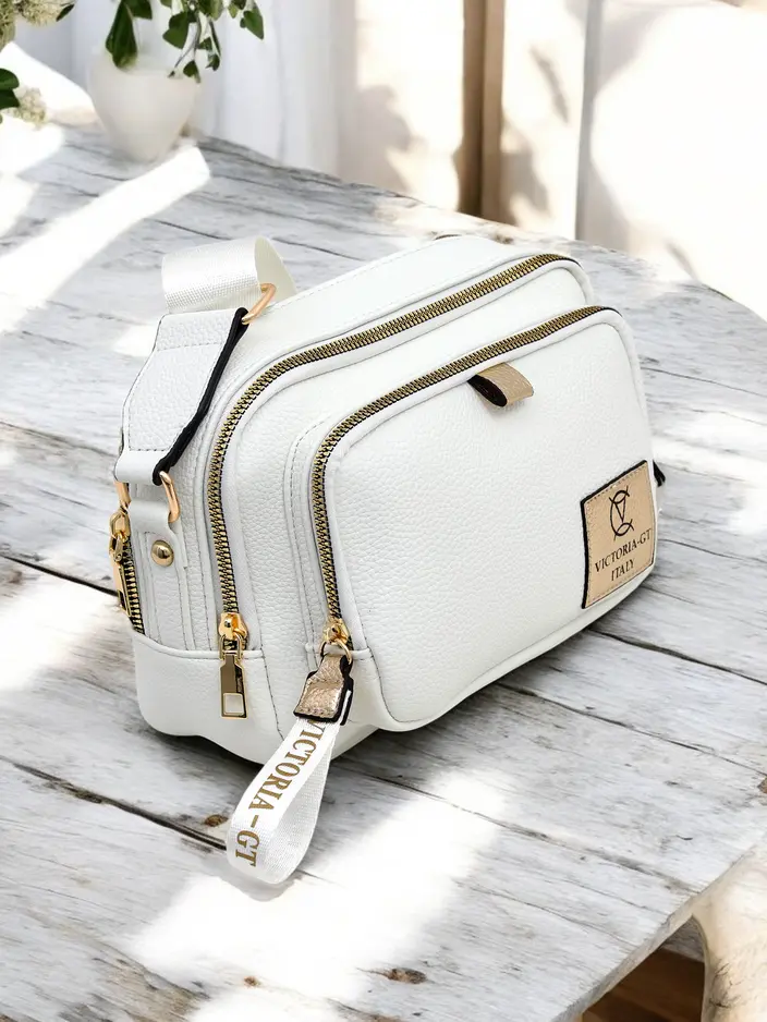 - Universelle Reißverschlusstasche aus ökologischem Leder. Das Modell verfügt über 2 Fächer und eine Außentasche. Außerdem hat es einen verstellbaren Riemen. Perfekt für den täglichen Gebrauch!