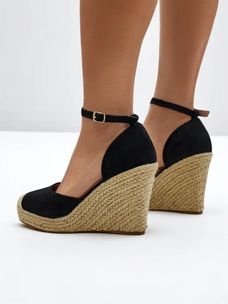 • Damen Wedgesandalen inspiriert von Espadrilles. Das Obermaterial besteht aus ökologischem Wildleder. Die Innensohle ist mit ökologischem Leder versehen. Der Absatz ist mit geflochtenem Jute-Schnur veredelt. Perfekt für den Sommer!