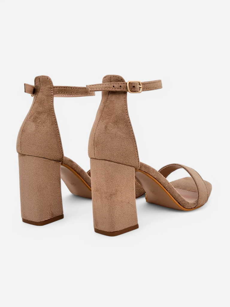- Damen High Heels - die perfekte Idee für heiße Sommertage. Das Modell besteht aus Eco-Suede und hat eine Eco-Lederinnensohle. Das Schuhwerk wird mit einer Schnalle verschlossen und hat eine quadratische Zehenform. Eine Kombination aus Stil und Komfort!