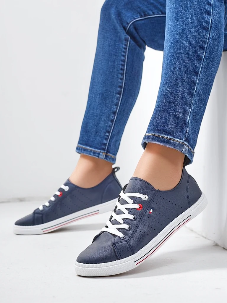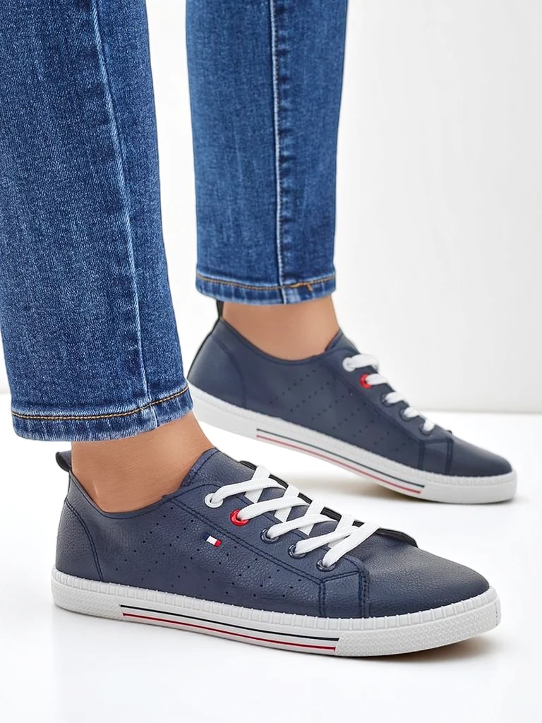 - Klassische Sneakers aus ökologischem Leder, das Innenfutter ist aus Stoff. Sehr bequem, mit Schnürung. Die Schuhe passen zu vielen Alltagsstilen!
