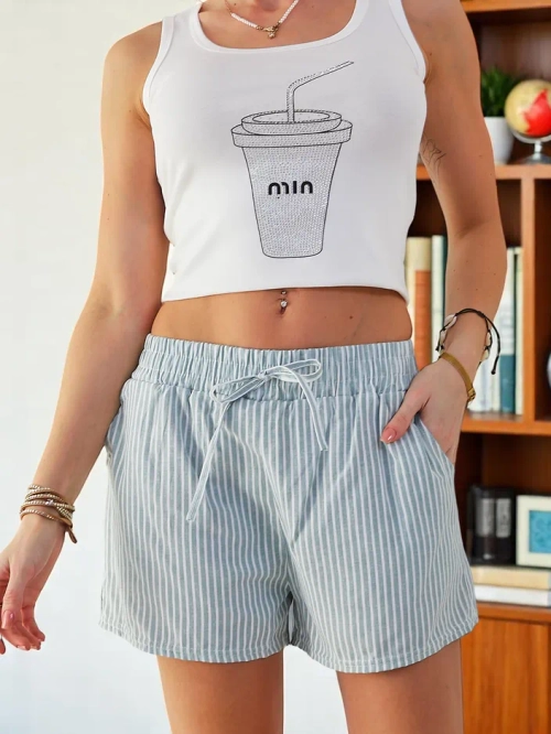 Royalfashion Damen-Shorts mit einem Bund und Kordelzügen in einem gestreiften Muster