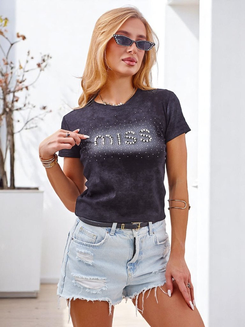 Royalfashion Damen T-Shirt aus Baumwolle mit Strasssteinen MISS