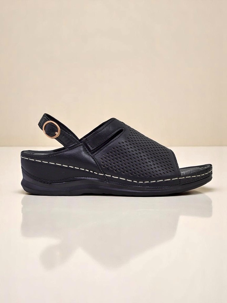 - Mira sind elegante Sandalen aus Öko-Leder mit niedrigem Keilabsatz. Das geschlossene Obermaterial und der Schnallenverschluss sorgen für Komfort und Stil im Alltag und bei besonderen Anlässen.