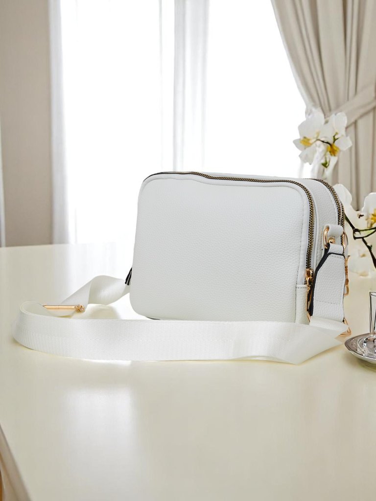 - Kleine Umhängetasche aus Kunstleder mit eleganter Prägung. Sie verfügt über 2 Fächer, 3 Taschen und einen verstellbaren Riemen – perfekt für den täglichen Gebrauch, da sie Stil und Funktionalität vereint.