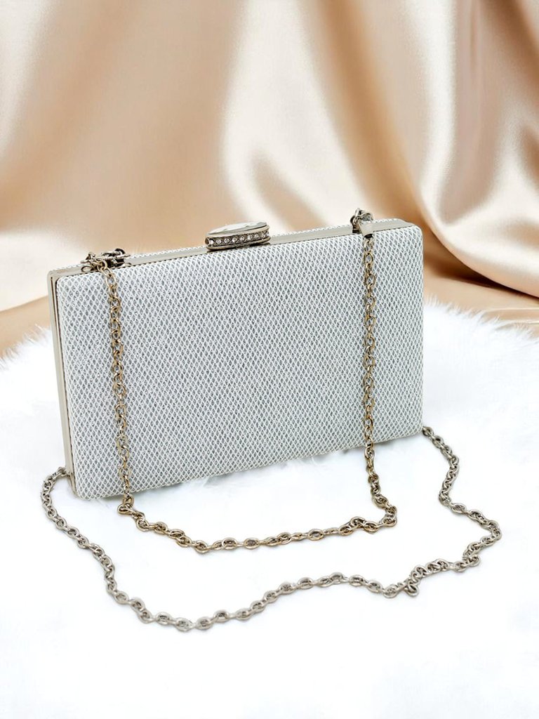 - Kuvert-Handtasche aus Ökoleder mit schimmerndem Faden und dezentem Prägemuster. Mit Druckknopfverschluss und abnehmbarer Kette – perfekt für Abendveranstaltungen und elegante Anlässe.