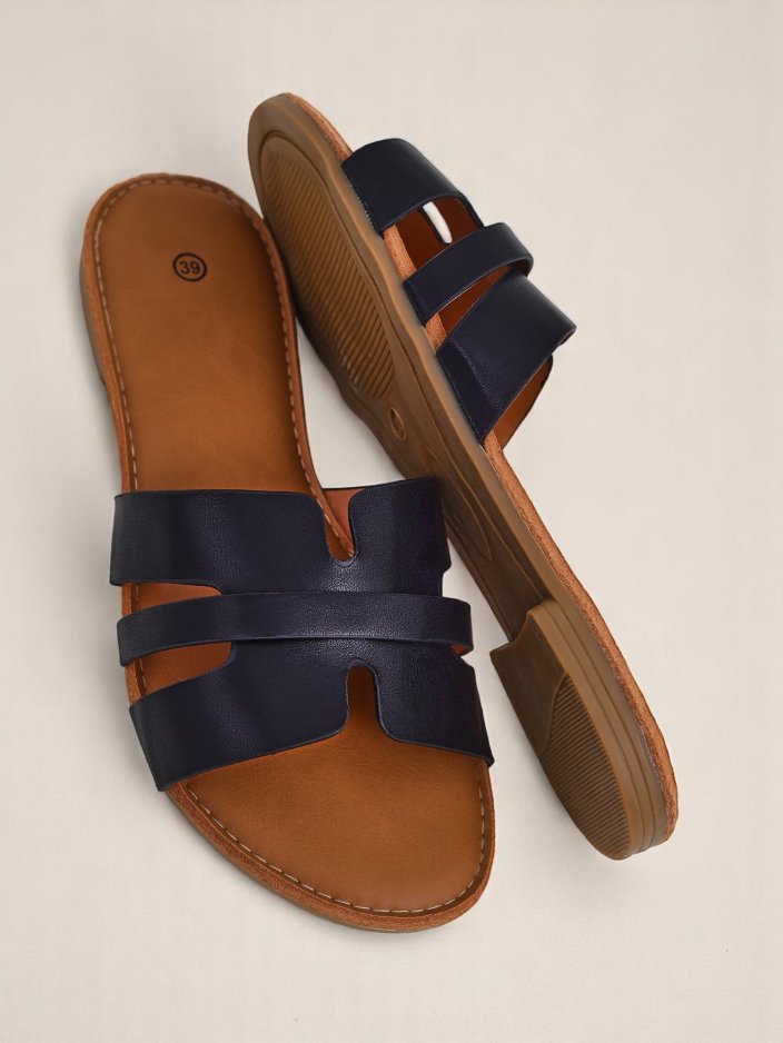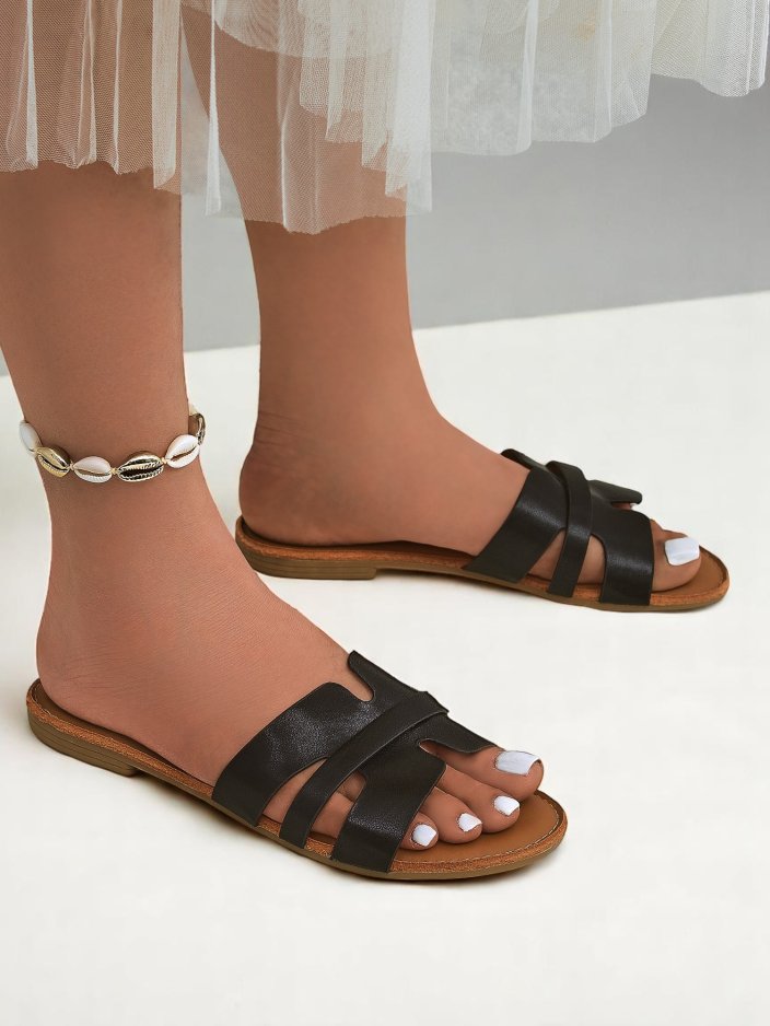 - Flache Damen-Pantoletten aus Öko-Leder. Stilvoll und bequem, ideal für den Sommer. Die weiche Innensohle und der klassische Schnitt eignen sich für den Alltag und sommerliche Stylings.