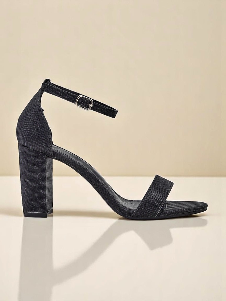 • Pumps aus glitzerndem Stoff mit hohem Blockabsatz. Die Innensohle aus Öko-Leder und der Schnallenverschluss sorgen für Komfort, Stabilität und einen atemberaubenden Look für jeden Anlass.