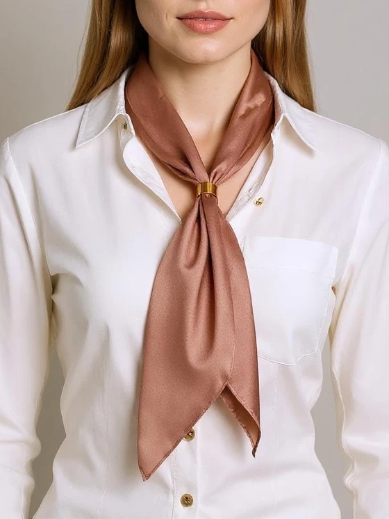 • Das stilvolle Damenhalstuch mit originellem Muster und dekorativem Ring ist eine Kombination aus modernem Design und femininer Eleganz. Es zieht alle Blicke auf sich und ergänzt sowohl Alltags- als auch Abendoutfits perfekt. Kleine Form, große Wirkung!
