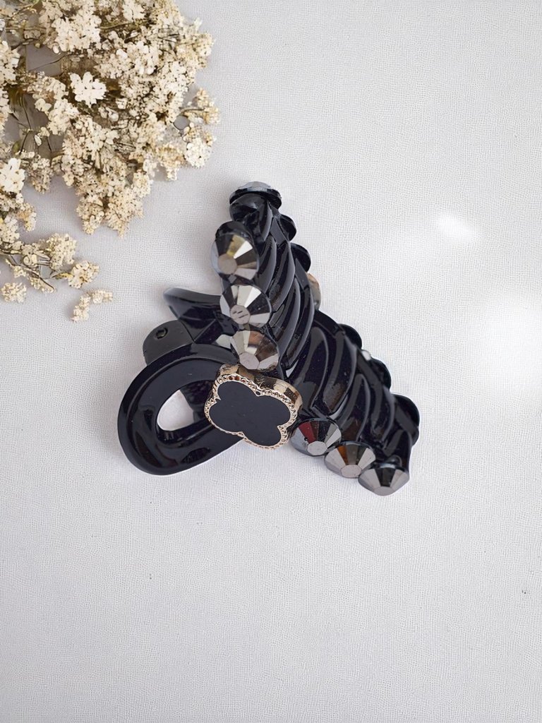 - Eine elegante Haarklammer, verziert mit funkelnden Zirkonias, ist das perfekte Accessoire für jeden Anlass. Ihr dezenter Glanz hebt Ihre Frisur hervor und verleiht Stil und Klasse. Ideal für Dutts, Hochsteckfrisuren und offene Wellen.