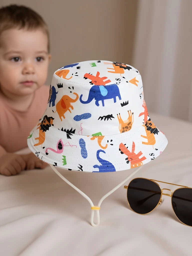 - Kinder-Bucket Hat mit einem bunten, fröhlichen Muster. Leicht und bequem, perfekt für Sommertage. Schützt vor der Sonne und verleiht jedem Kinderoutfit Energie!