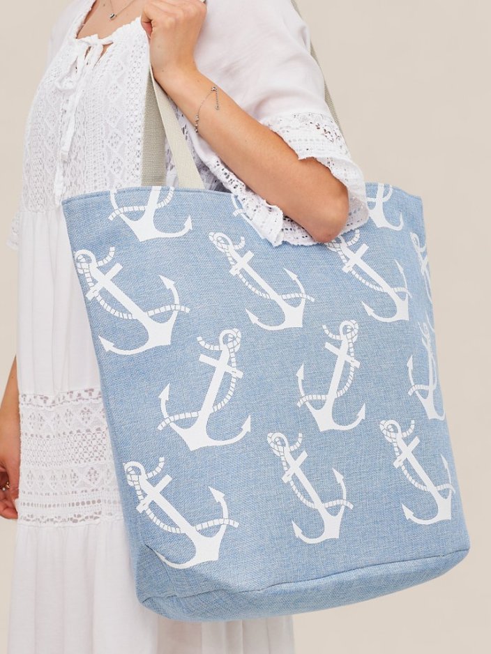 - Klassische Schultertasche aus weichem Stoff mit Anker-Print. Innen befindet sich ein Hauptfach und eine kleine offene Tasche. Perfekt zum Einkaufen, für den Strand oder den täglichen Gebrauch!