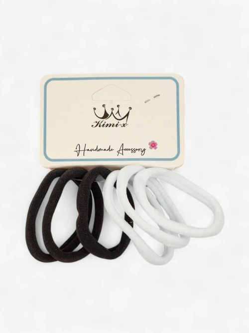 Royalfashion Set aus 6 Haargummis Farbe Schwarz & Weiß