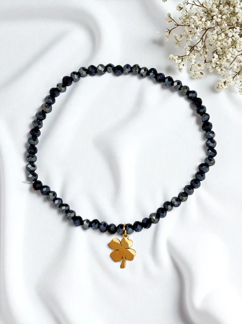 - Armband mit Perlen und Kleeblatt-Anhänger ist ein stilvoller Glücksbringer. Zart und elegant, symbolisiert es Glück, Hoffnung und positive Energie. Perfekt für den Alltag als dezentes Accessoire mit einer einzigartigen Botschaft.