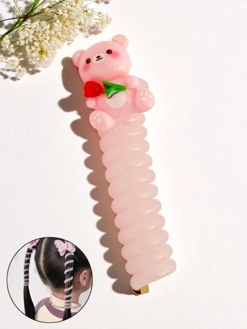 - Elastisches Haargummi Teddy Twist in Form einer Feder, verziert mit einem niedlichen Teddybär. Es hält das Haar sanft, ohne es zu beschädigen, und verleiht jeder Frisur einen süßen, kindlichen Charme. Perfekt für den Alltag und zum Spielen.